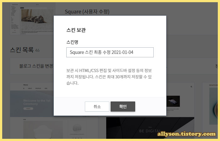보기 편한 스킨명을 입력하고 확인~!!