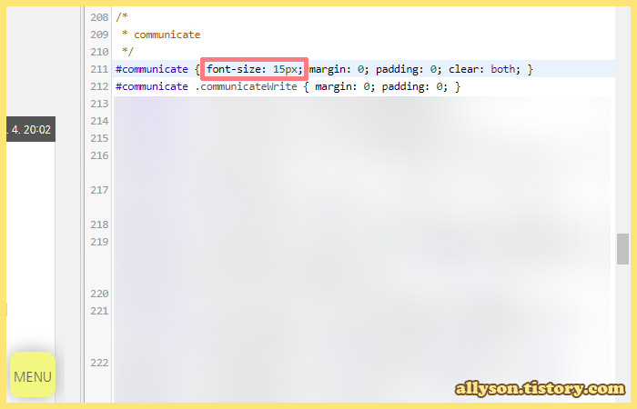 폰트사이즈와 줄간격을 수정하니 딱 제가 원했던 크기가 되었습니다. 그런데 본문과 댓글이 함께 움직여서, 댓글 크기도 덩달아 커졌더라고요. 본문보다 댓글은 살짝 작아도 될 것 같아서, #communicate에 font-size: 15px; 를 삽입해주었습니다.