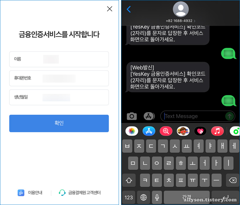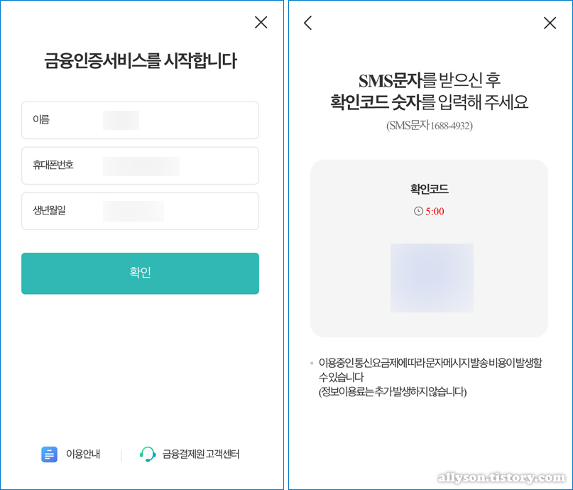 이름, 휴대폰 번호, 생년월일 입력 후,