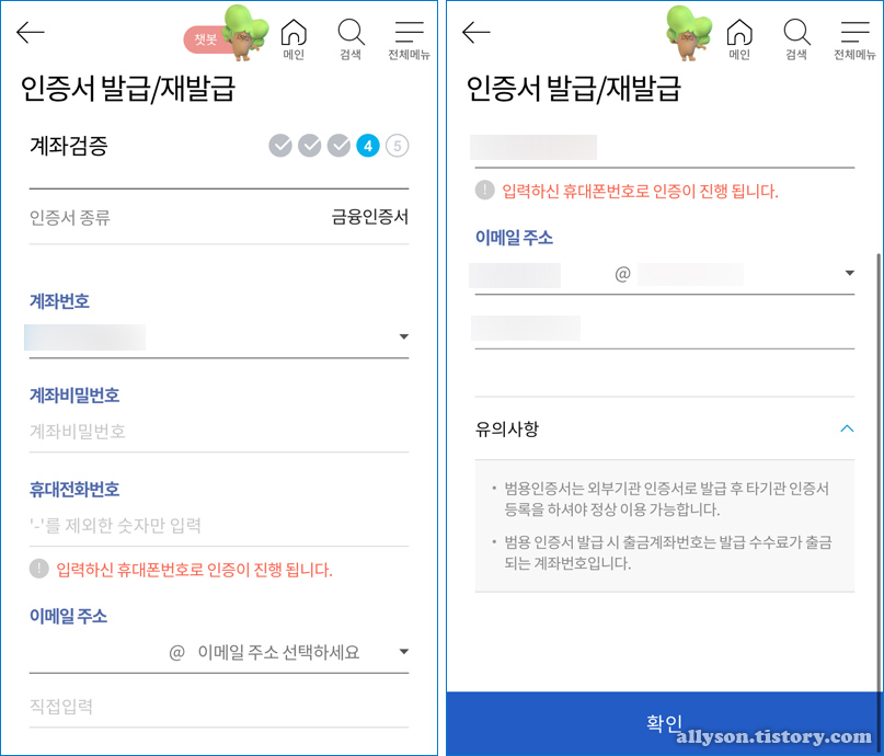인증서 > 금융인증서 > 인증서 발급/재발급