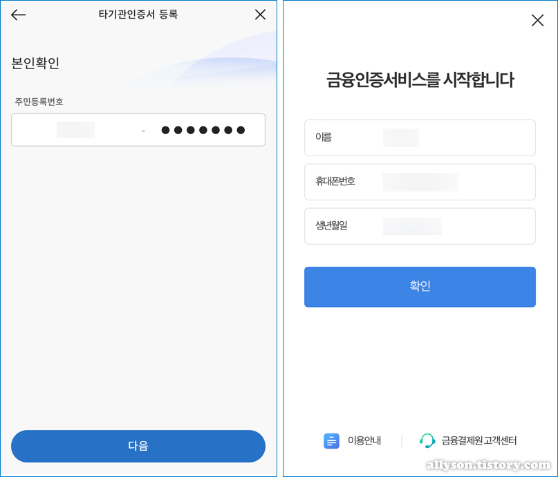 | 이용 | 모든 전자거래에 이용가능 | 은행 · 신용카드 · 보험 · 정부민원 |