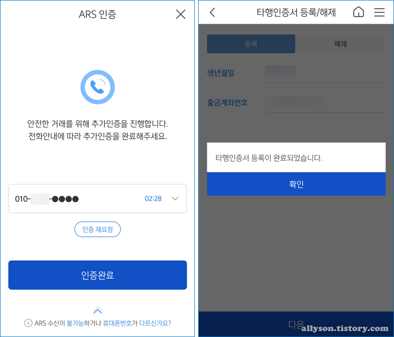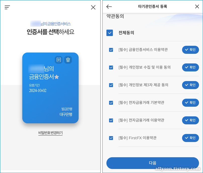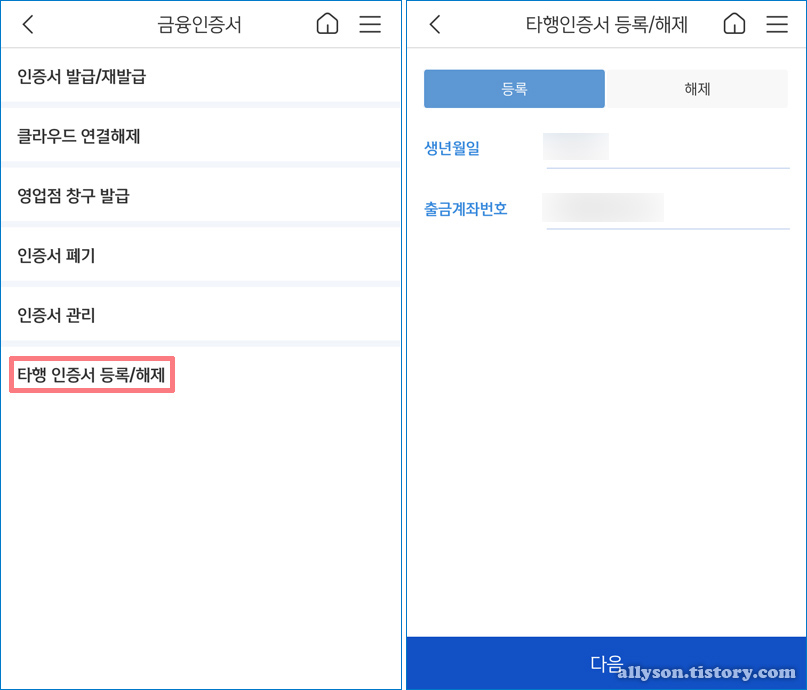 (타행 인증서 등록/해제로 들어가야 하지만,